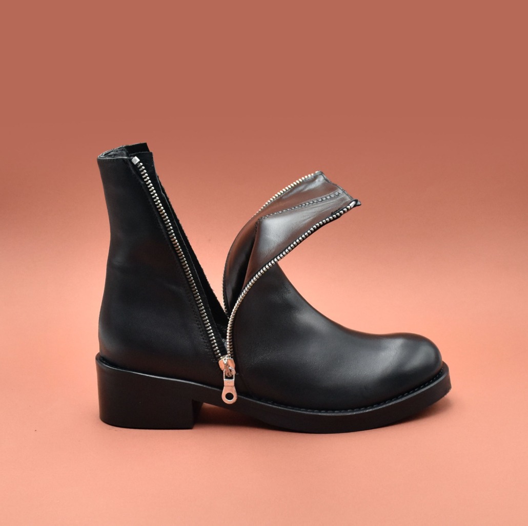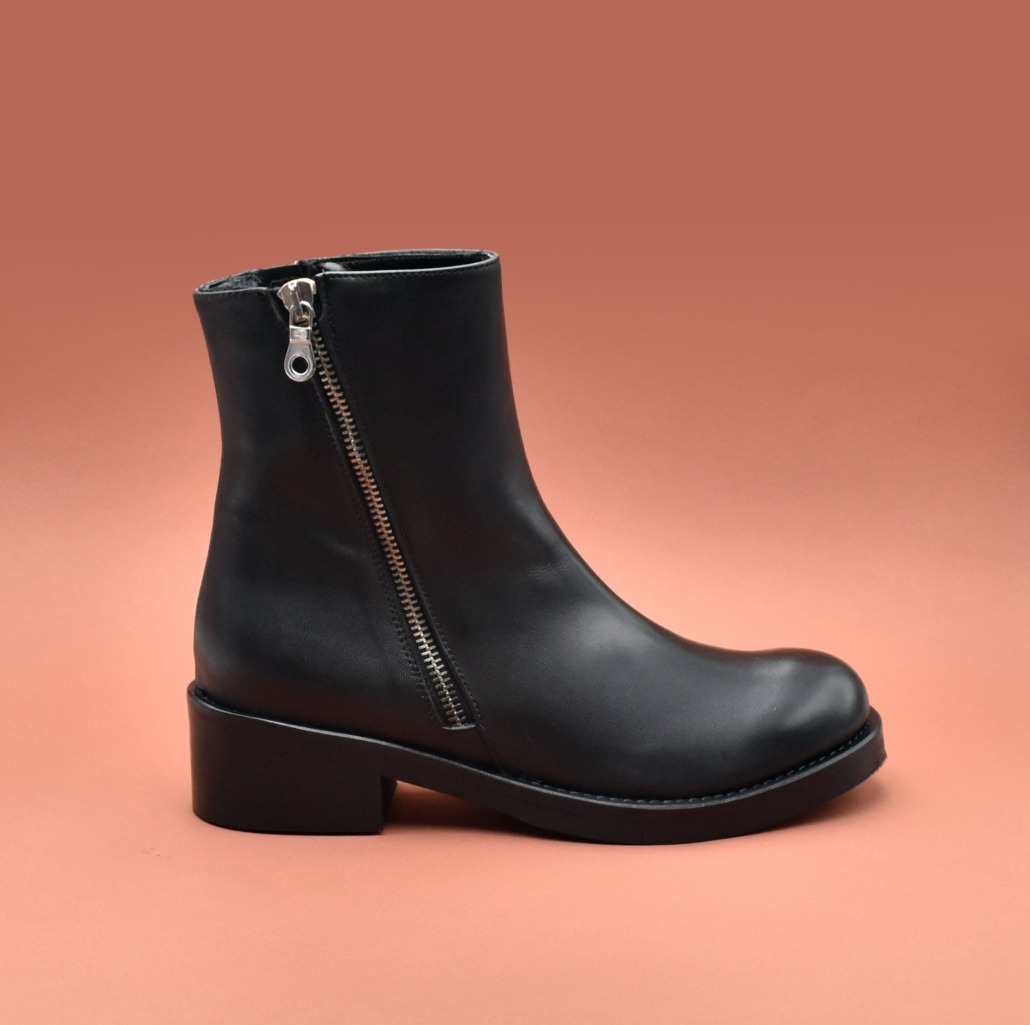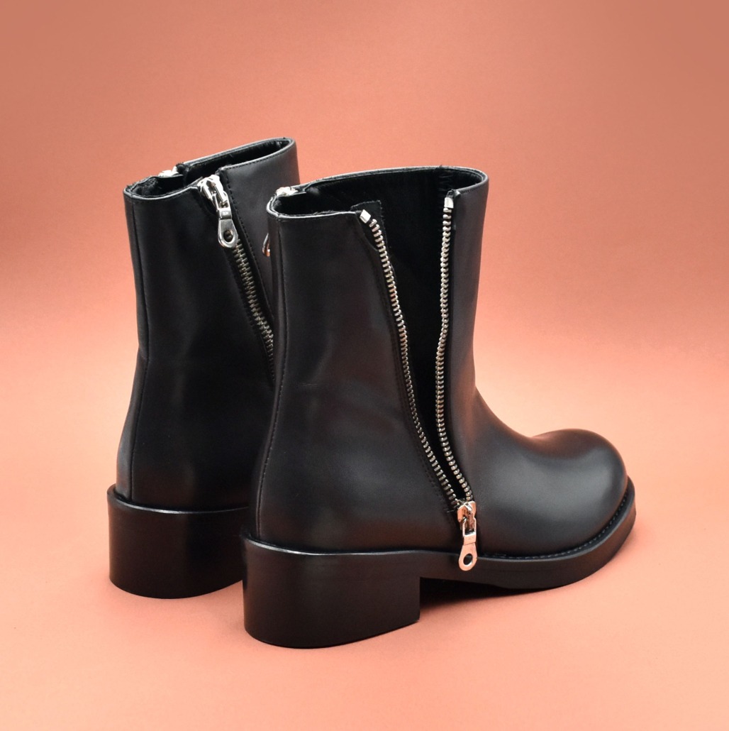 Biker in vitello nero e con doppia zip che permette al gambale di aprirsi completamente.
