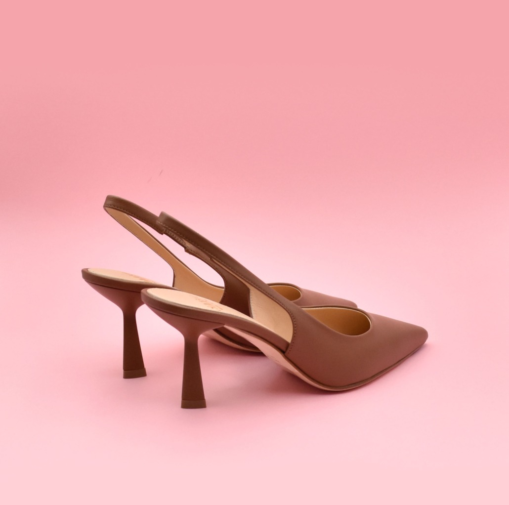 Slingback in morbida Nappa Nocciola e forma sfilata.