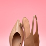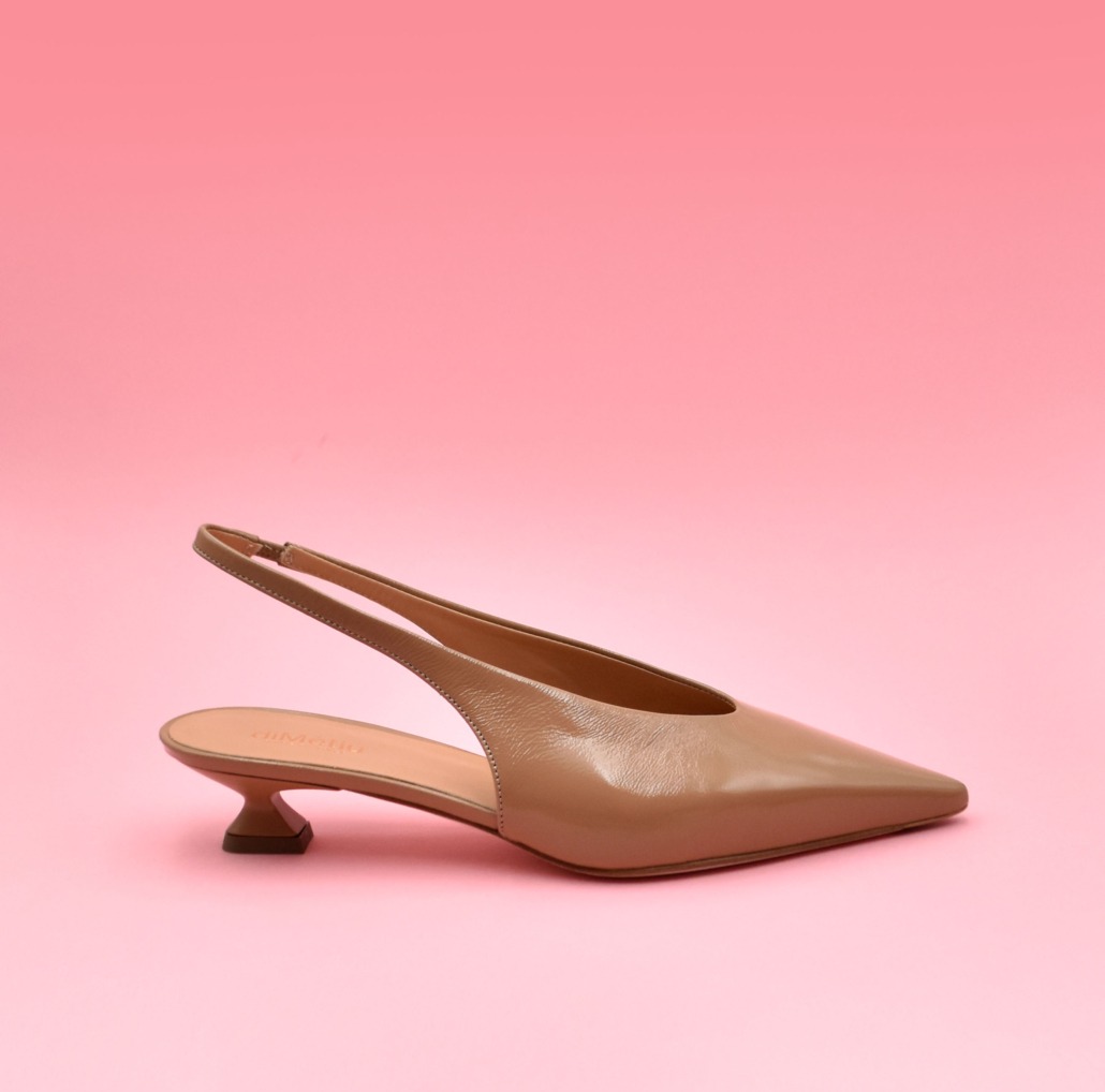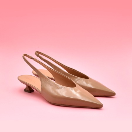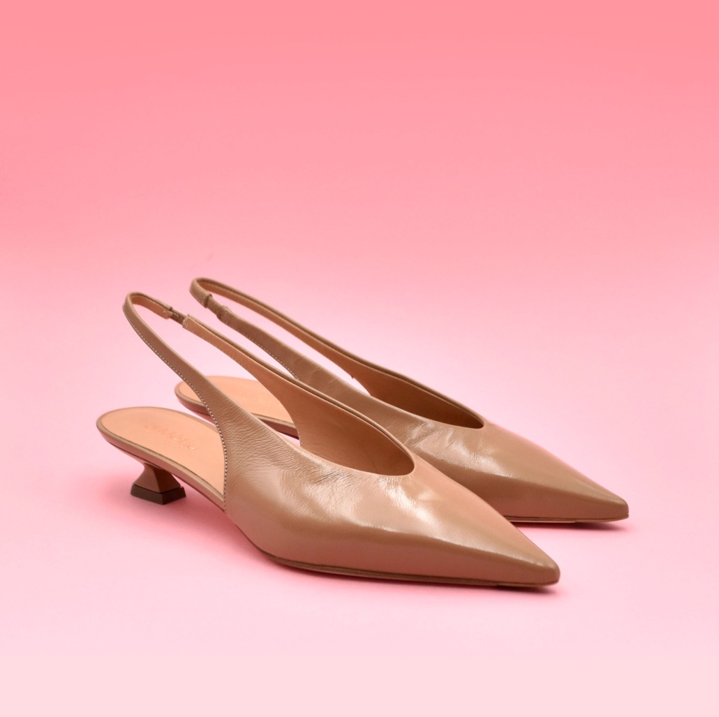 Slingback in morbida nappa nude con scollo a V alto e avvolgente.