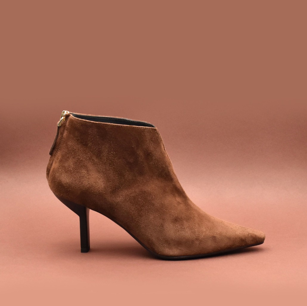 Stivaletto in morbido camoscio Sigaro con motivo ‘spacco’ su collo piede.