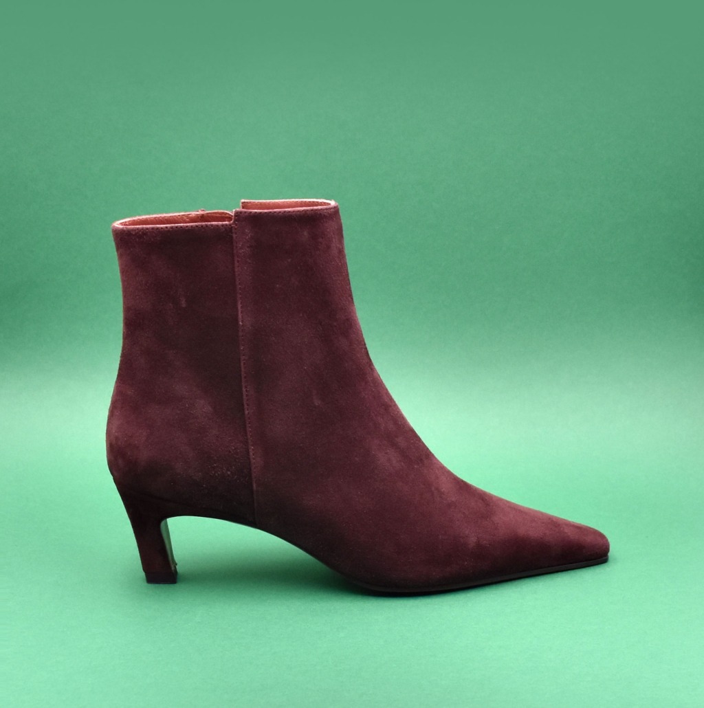 Stivaletto in morbido camoscio Vinaccia con motivo zig zag sulla linea del gambale.