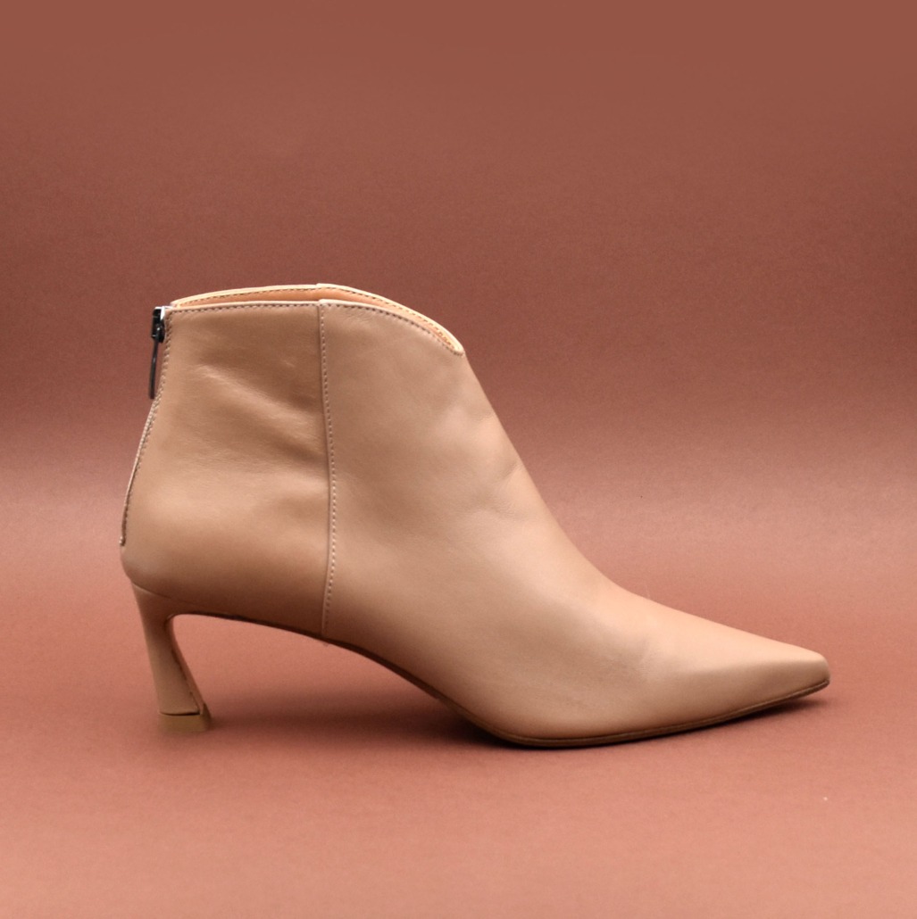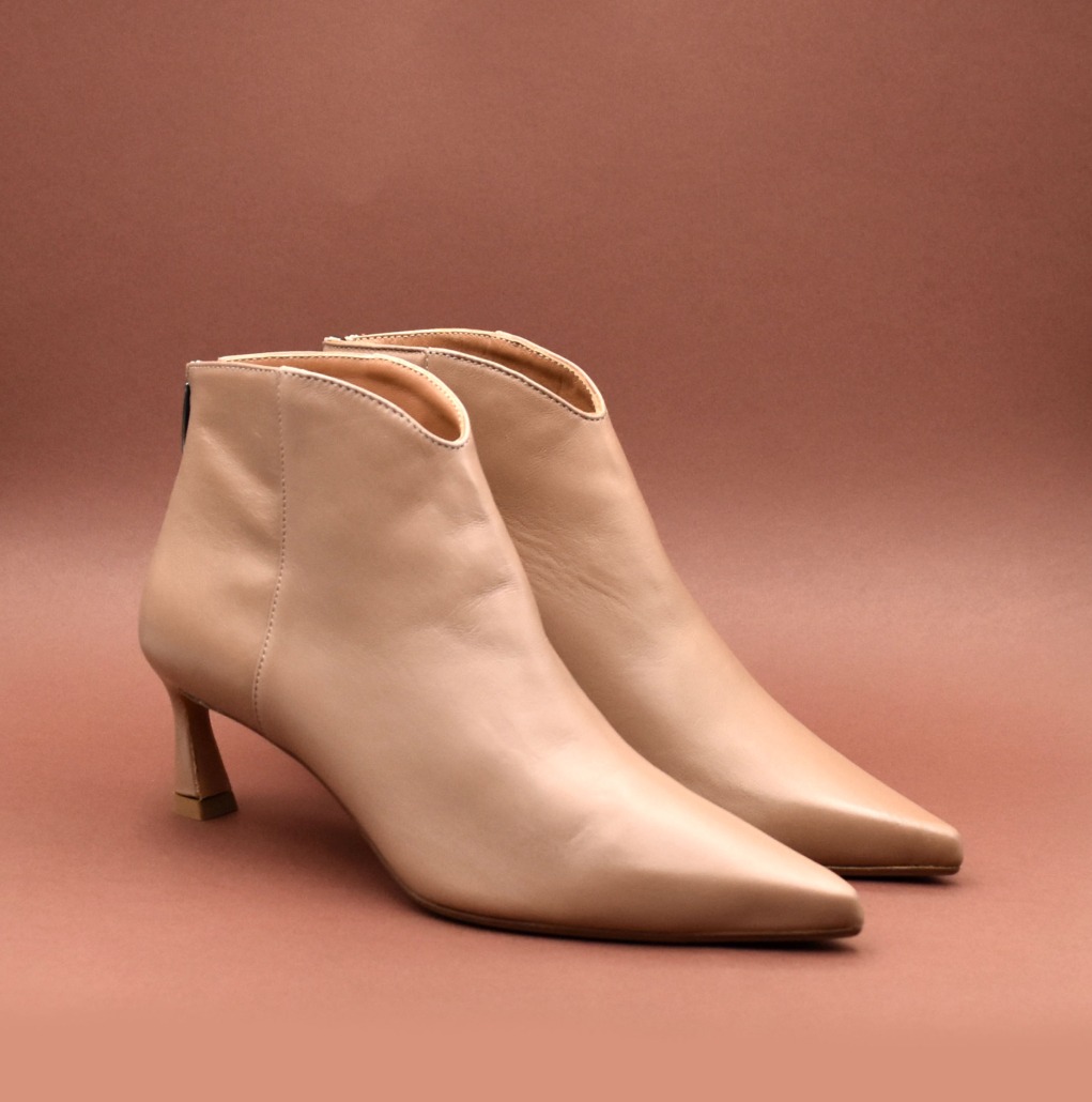 Tronchetto in morbida pelle nappa color Mou, versatile ed elegante con motivo V sul davanti.